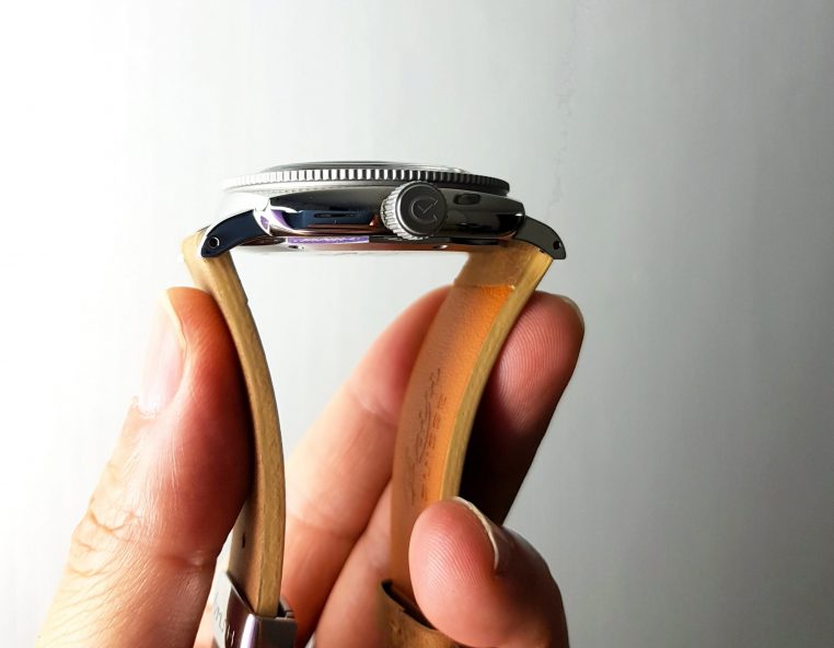 The case is 42mm across and water resistant to 200m, thanks to the updated screw-down crown as well as a thick box-style sapphire crystal, mirroring the design codes of vintage dive watches with domed Perspex glass. The lugs are gently curved to retain the overall elegance of this timepiece. The